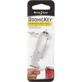 Made of durable stainless steel, the Nite Ize DoohicKey features a half-dozen tools that do everything from tightening bolts and screws to opening a bottle of refreshment, all in a simple key tool that fits in the palm of your hand. On one end of the DoohicKey is a sturdy carabiner clip, allowing you to attach keys to it, or attach the DoohicKey itself to any loop or ring. Opposite the clip is an etched ruler for on-the-spot measurements, and the carabiner opening is strategically shaped to function as a wrench. On the other end, the DoohicKey features a bottle opener, a flathead screwdriver, and a box cutter. With a streamlined, clever design that makes it easy to carry, attach, remove, and reattach, it's always as at hand as it is handy.